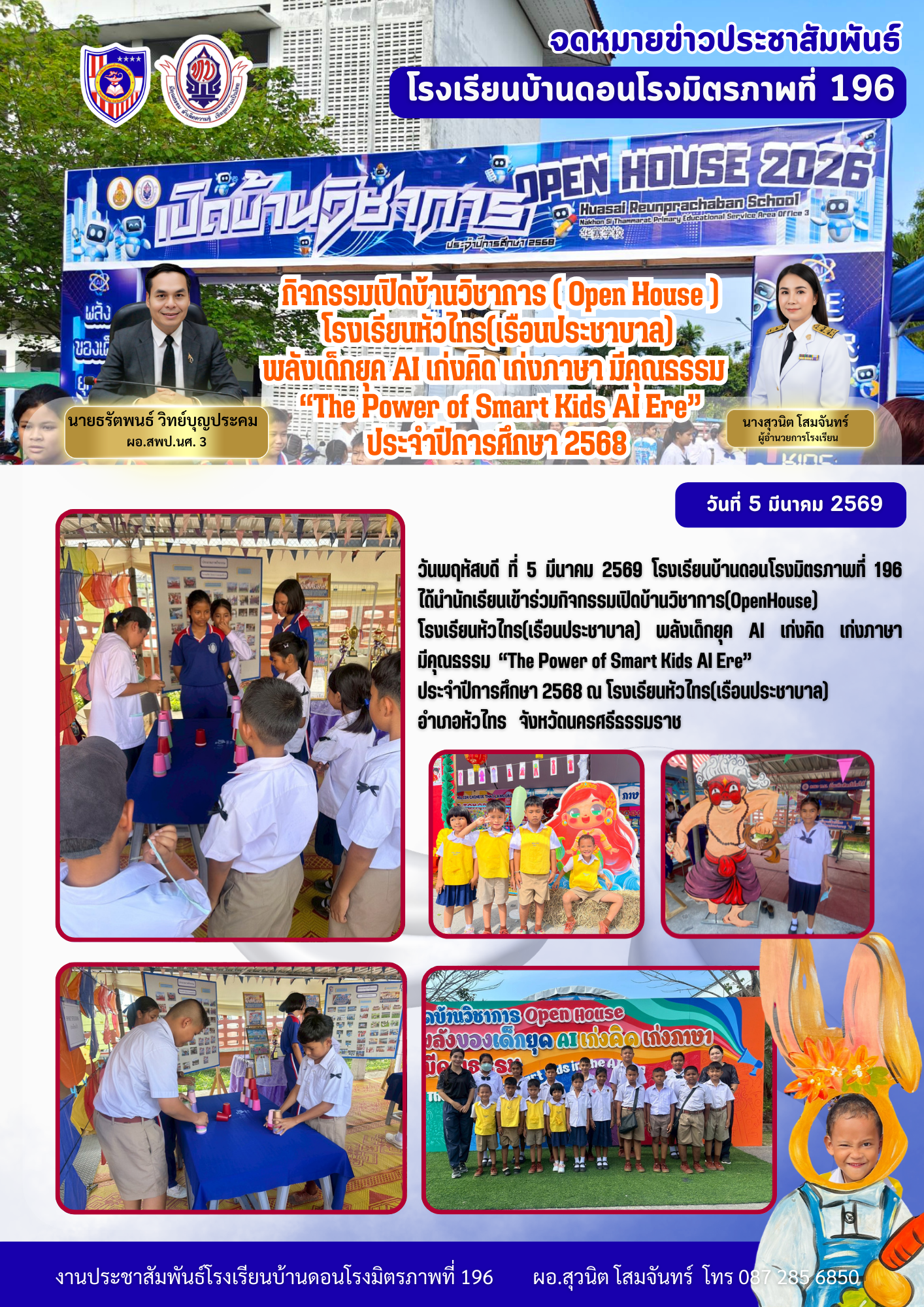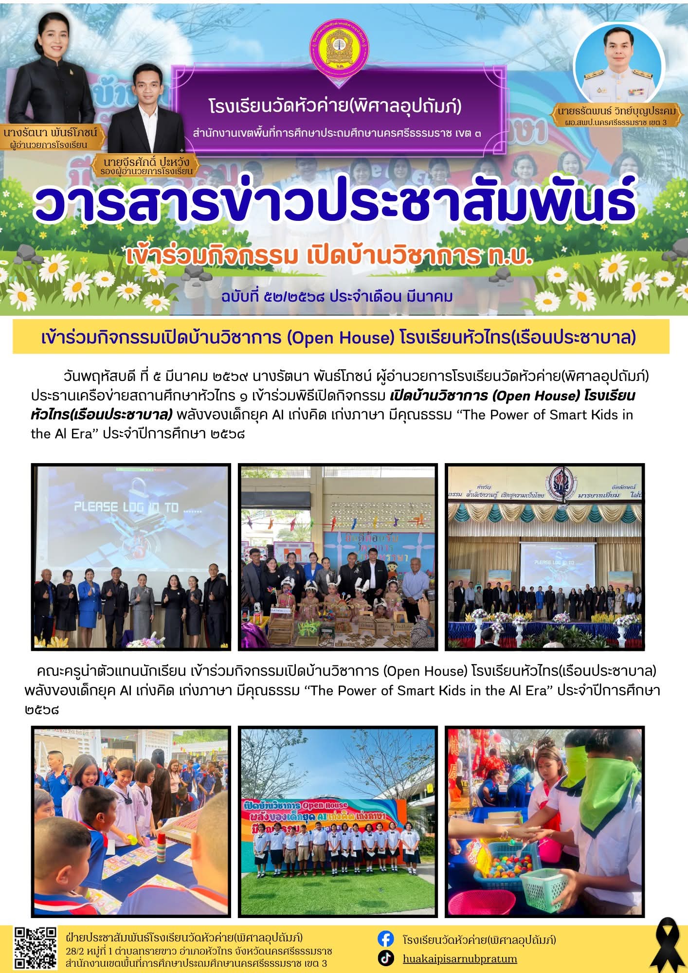 เข้าร่วมกิจกรรม เปิดบ้านวิชาการ ท.บ. (Open House) โรงเรียนหัวไทร(เรือนประชาบาล) พลังของเด็กยุค AI เก่งคิด เก่งภาษา มีคุณธรรม “The Power of Smart Kids in the Al Era”