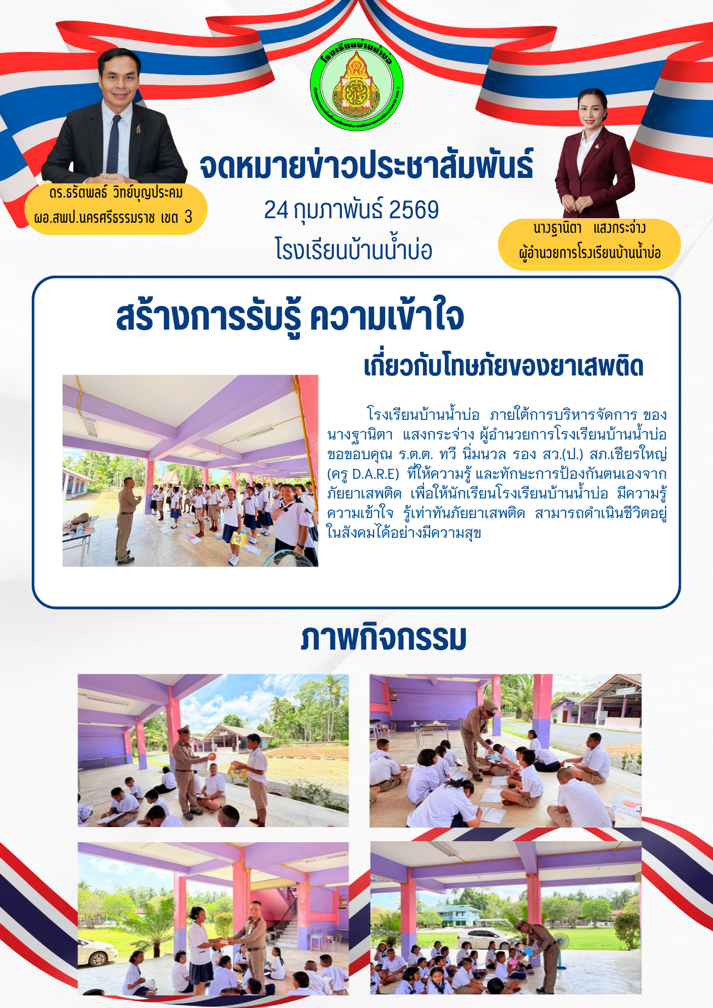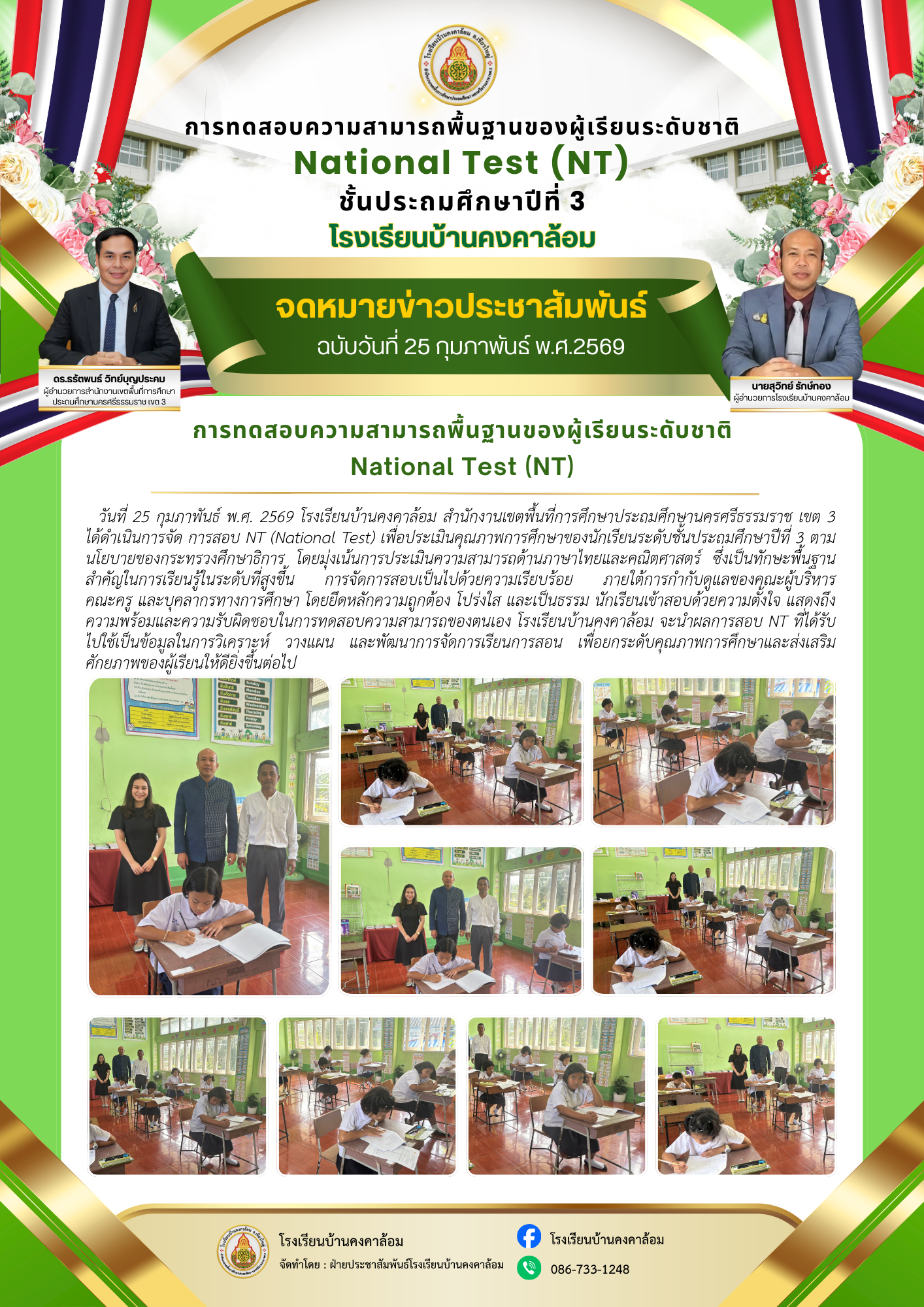 วันที่ 24 กุมภาพันธ์ พ.ศ.2569 นายสุวิทย์ รักษ์ทอง ผู้บริหารโรงเรียนบ้านคงคาล้อม เข้าร่วมกิจกรรมพัฒนาสภาพแวดล้อมที่เอื้อต่อการปฏิบัติงานและการบริหารจัดการความปลอดภัย ตามโครงการของสำนักงานเขตพื้นที่การศึกษาประถมศึกษานครศรีธรรมราช เขต 3 โดยมีวัตถุประสงค์เพื่อปรับปรุงภูมิทัศน์และพัฒนาสภาพแวดล้อมโดยรอบให้มีความสะอาด สวยงาม เป็นระเบียบเรียบร้อย และเอื้อต่อการปฏิบัติงานอย่างมีประสิทธิภาพและปลอดภัย...