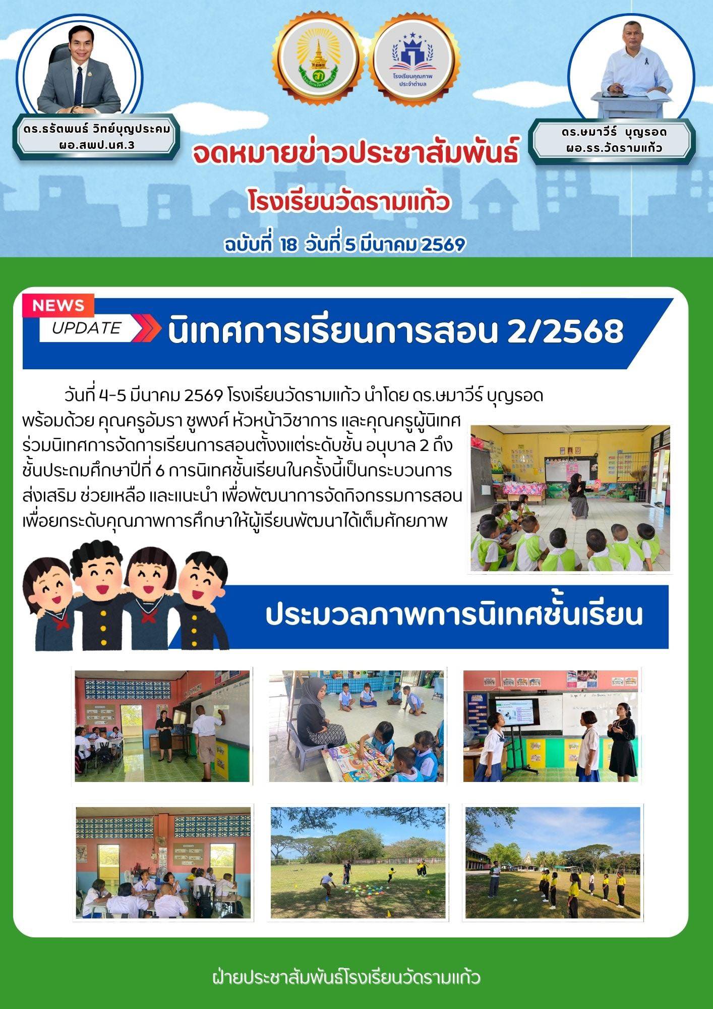 วันที่ 4-5 มีนาคม 2569 โรงเรียนวัดรามแก้ว นำโดย ดร.ษมาวีร์ บุญรอด พร้อมด้วย คุณครูอัมรา ชูพงศ์ หัวหน้าวิชาการ และคุณครูผู้นิเทศ ร่วมนิเทศการจััดการเรียนการสอนตั้งงแต่ระดับชั้น อนุบาล...