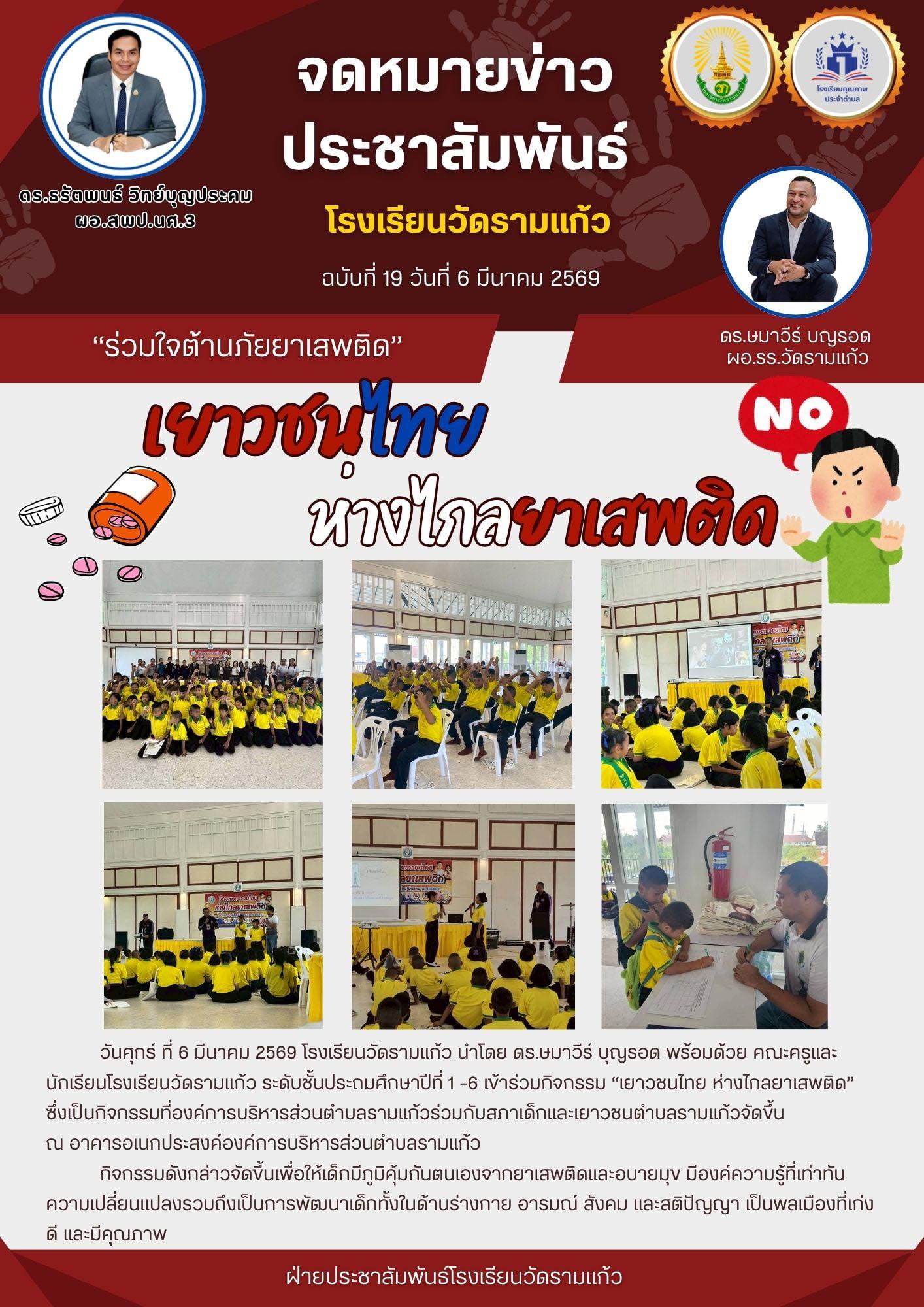 นศุกร์ ที่ 6 มีนาคม 2569 โรงเรียนวัดรามแก้ว นำโดย ดร.ษมาวีร์ บุญรอด พร้อมด้วย คณะครูและนักเรียนโรงเรียนวัดรามแก้ว ระดับชั้นประถมศึกษาปีที่ 1 -6 เข้าร่วมกิจกรรม...