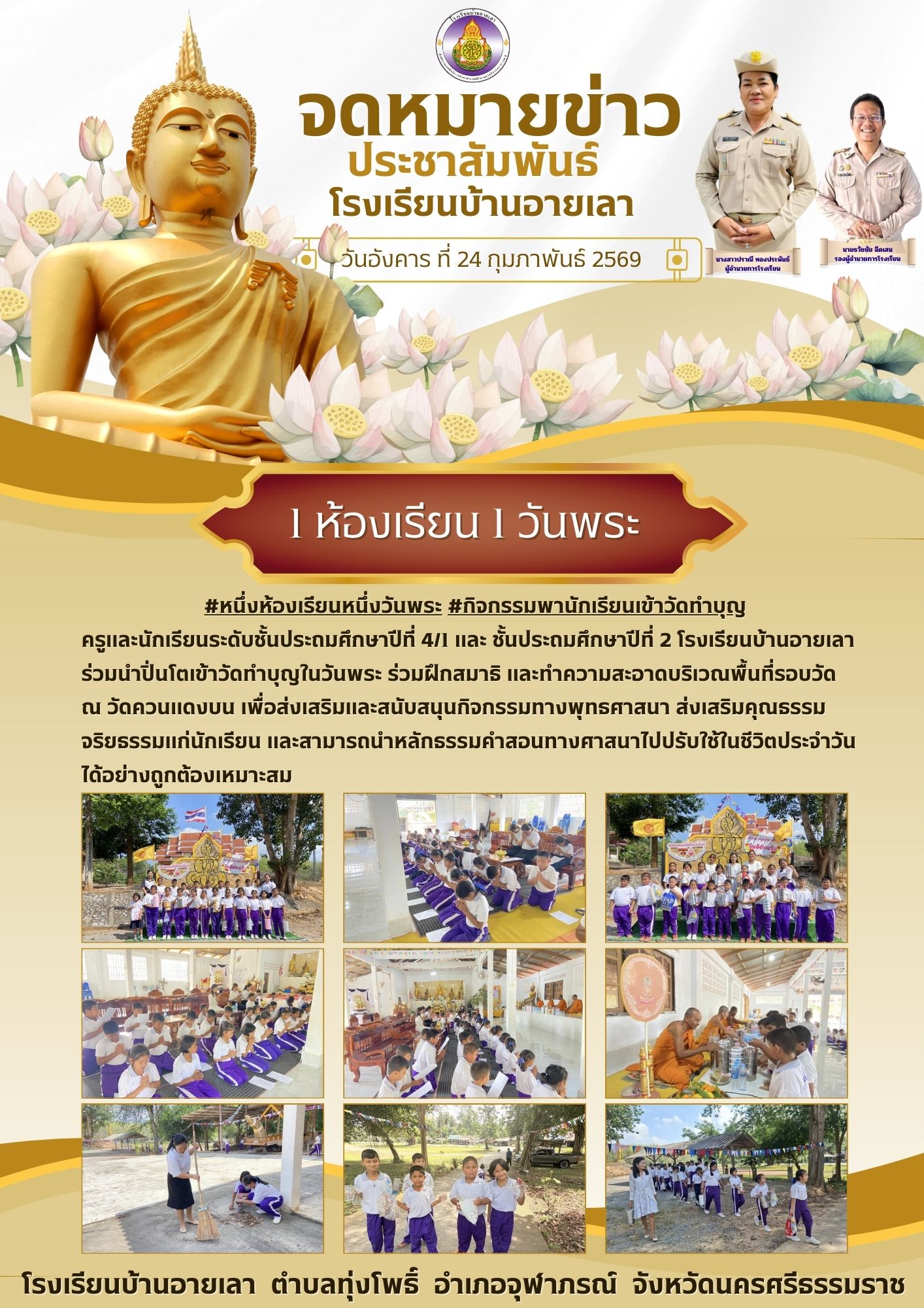 #หนึ่งห้องเรียนหนึ่งวันพระ #กิจกรรมพานักเรียนเข้าวัดทำบุญ