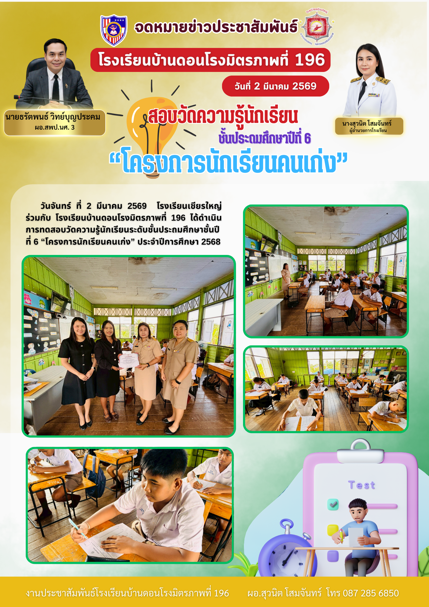 นายอดิศักดิ์ ชุมฉิม ผู้อำนวยการโรงเรียนวัดธาราวง พร้อมด้วยคณะครู นำนักเรียนเข้าร่วมกิจกรรมเวียนเทียนเนื่องในโอกาสวันสำคัญทางพระพุทธศาสนา “วันมาฆบูชา” ณ วัดวิภาดีรังสิตาราม เพื่อให้นักเรียนได้ตระหนักถึงความสำคัญของวันสำคัญทางพระพุทธศาสนา พร้อมเรียนรู้หลักธรรมและสืบสานประเพณีอันดีงานผ่านการปฏิบัติจริง