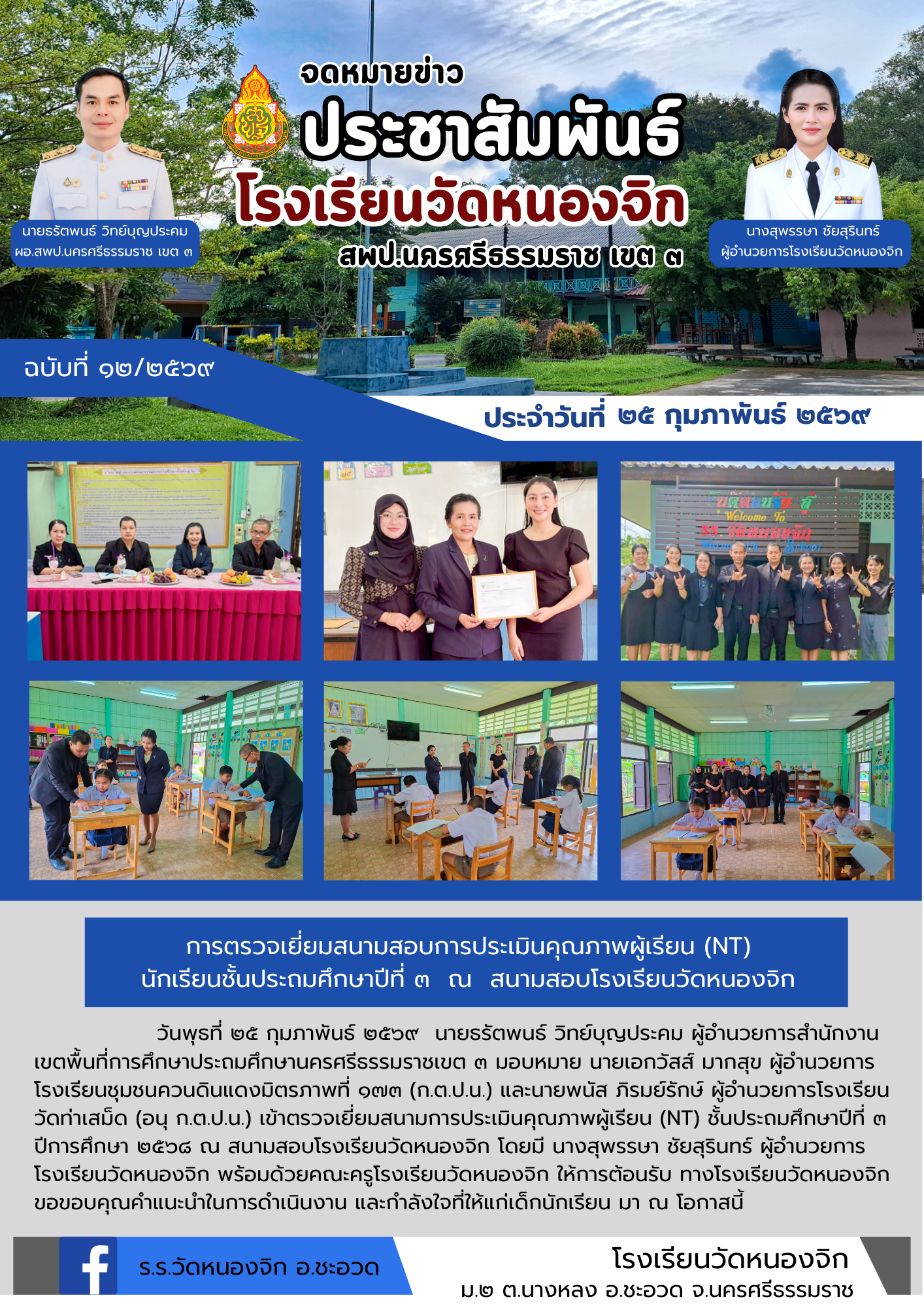การตรวจเยี่ยมสนามการประเมินคุณภาพผู้เรียน (NT) ชั้นประถมศึกษาปีที่ ๓ ปีการศึกษา ๒๕๖๘ ณ สนามสอบโรงเรียนวัดหนองจิก