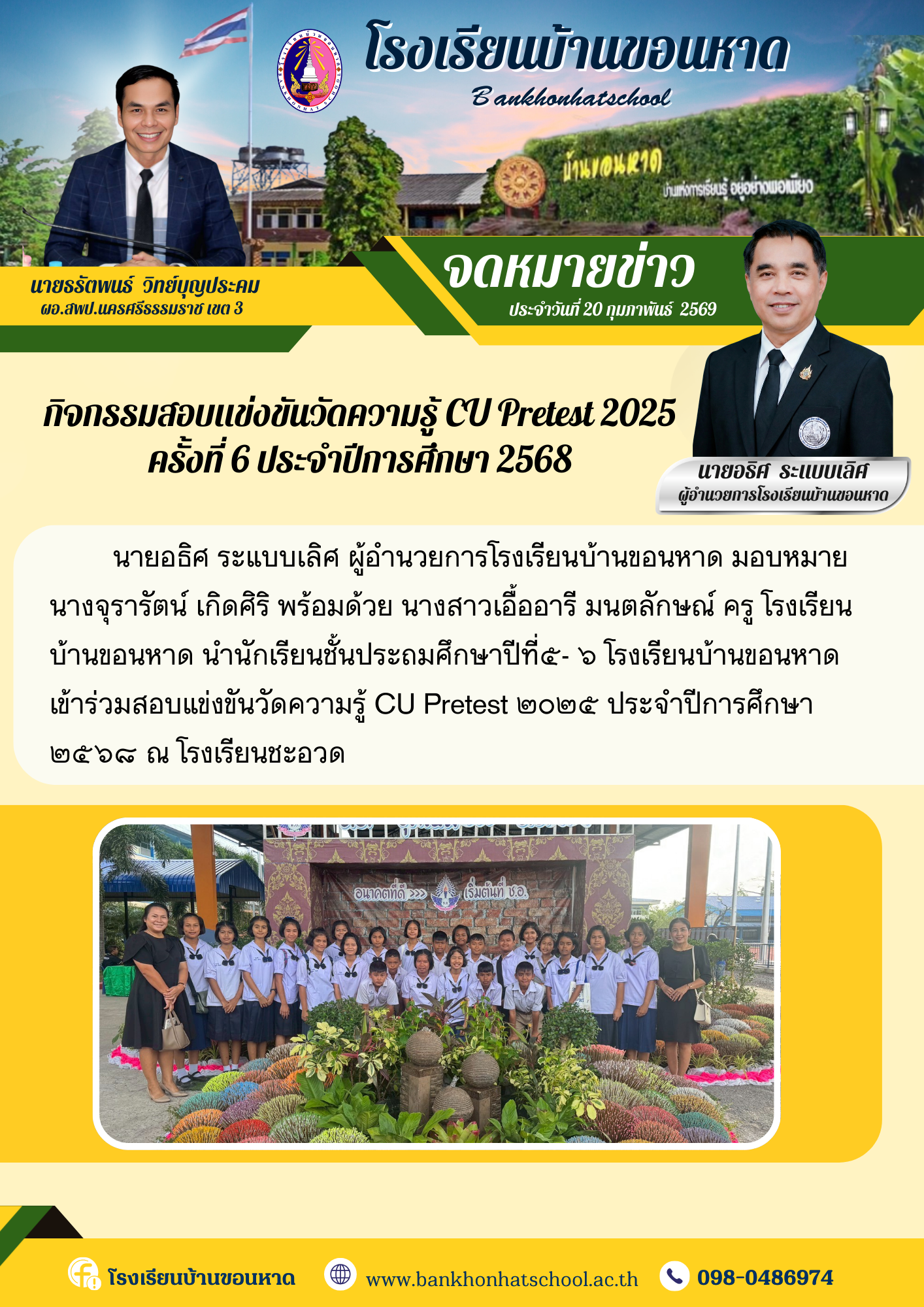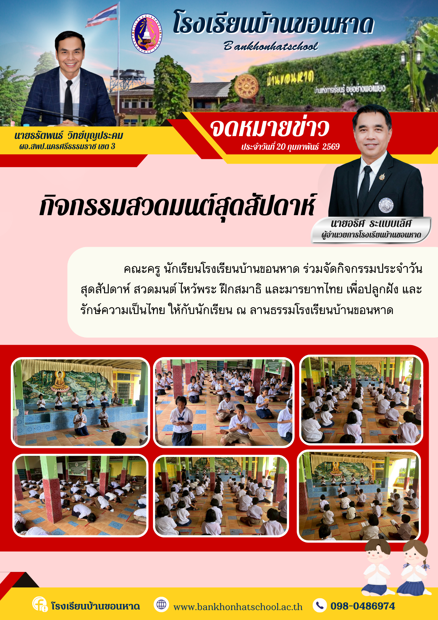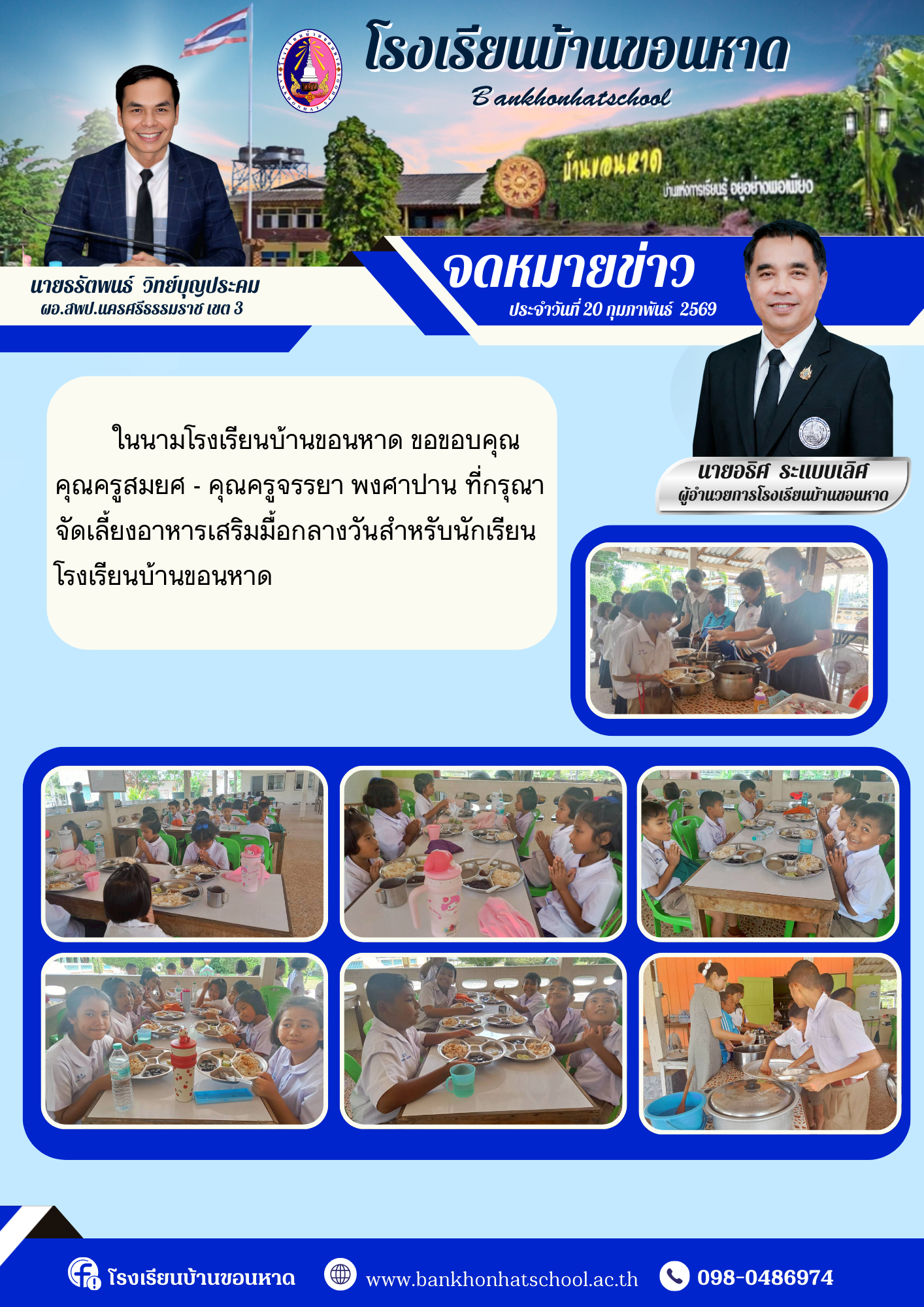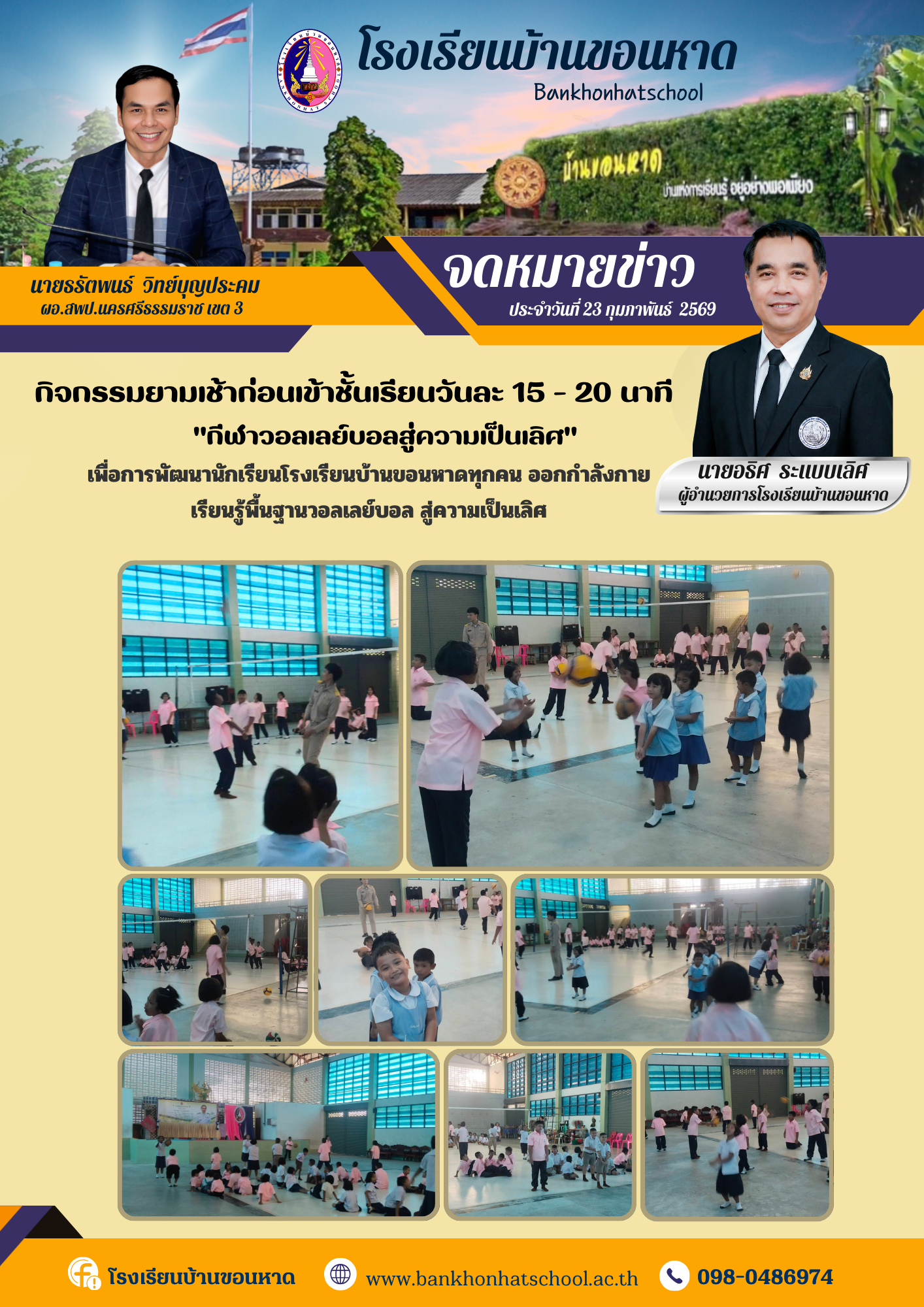 วันพฤหัสบดีที่๑๒ กุมภาพันธ์ ๒๕๖๙ โรงเรียนบ้านขอนหาด