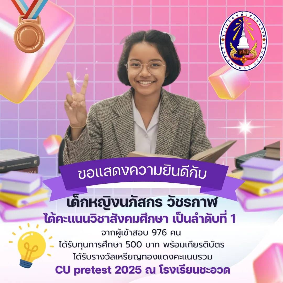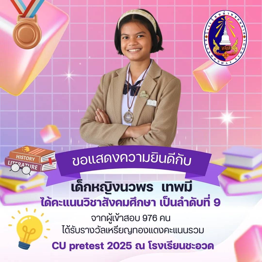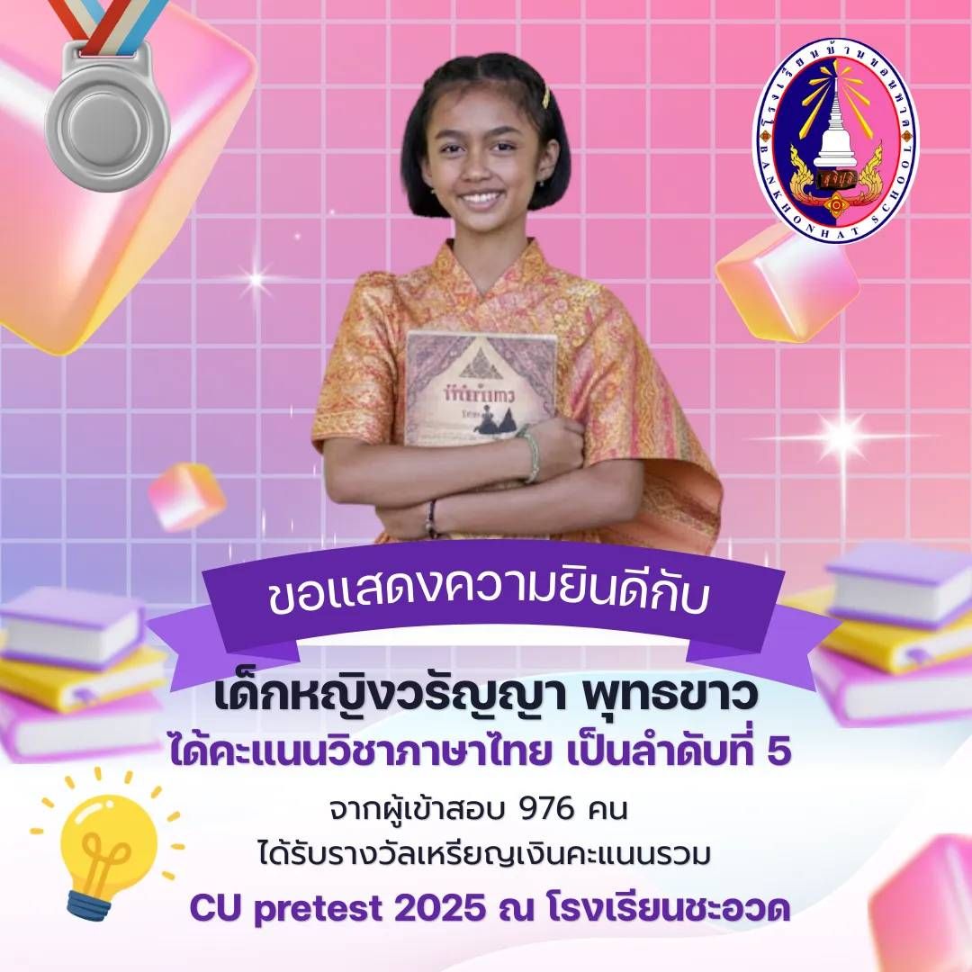 เด็กหญิงภัทราวดี เลาแก้ว นักเรียนชั้นประถมศึกษาปีที่๖โรงเรียนบ้านขอนหาดรับเกียรติบัตรนักเรียนที่มีผลสอบคะแนนวิชาภาษาไทยลำดับที่ ๒ ในเขตพื้นที่บริการ ในการสอบแข่งขันวัดความรู้ เยาวชนคนเก่ง ครั้งที่ ๑๔ โรงเรียนชะอวดวิทยาคาร...